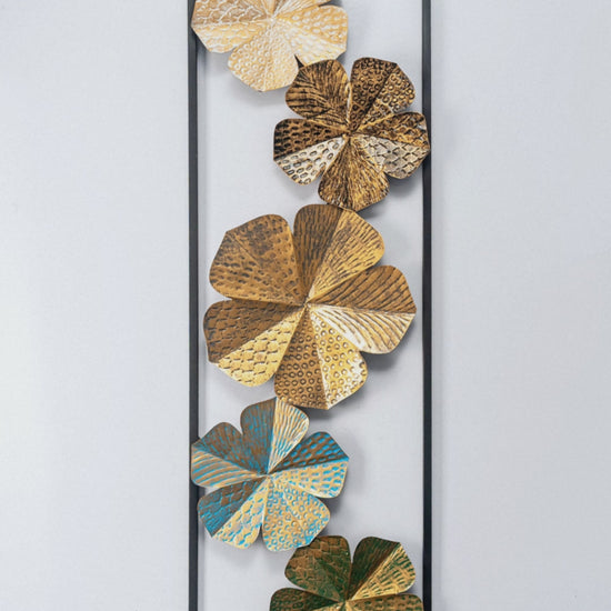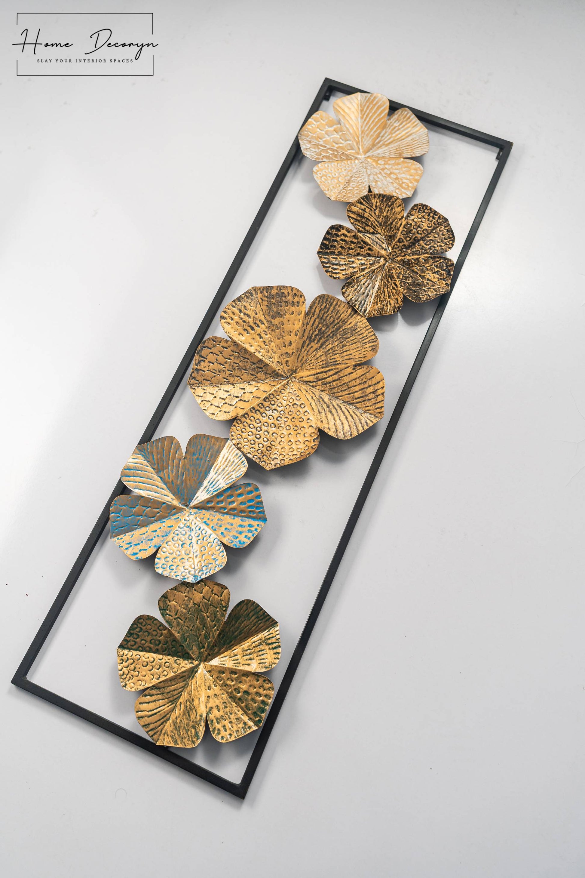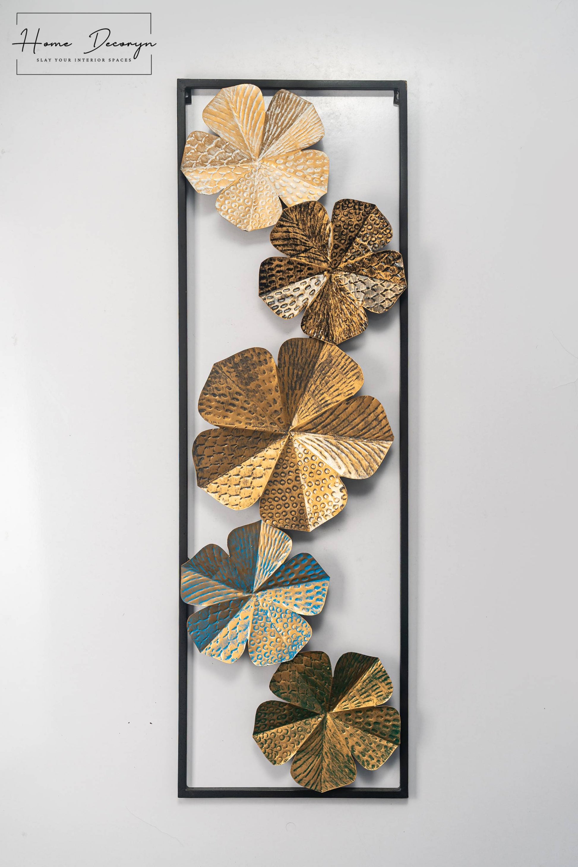 A graceful metallic column of flower-shaped patterns, stacked in perfect harmony to create a vertical bloom of elegance. This artistic piece adds a touch of nature’s beauty and sculptural charm to any interior setting.