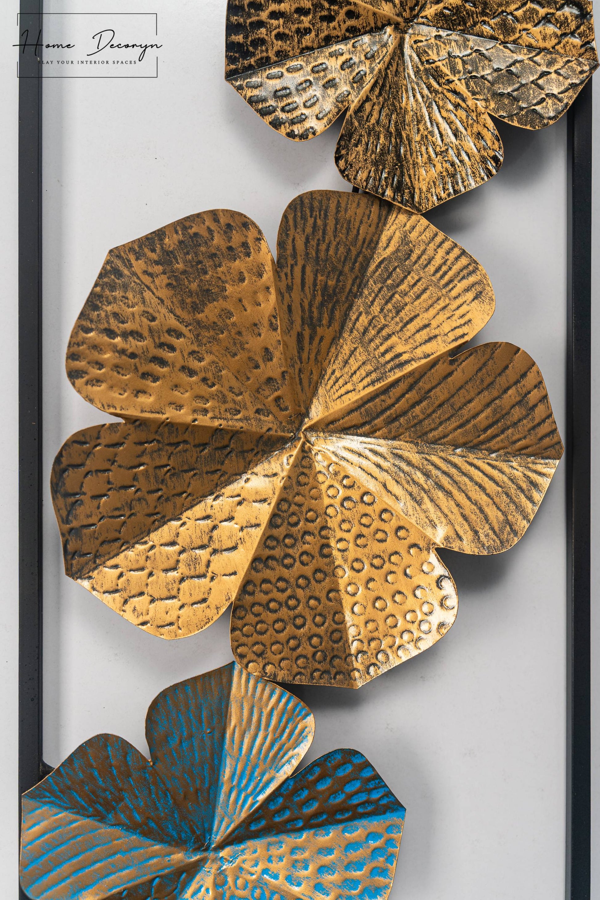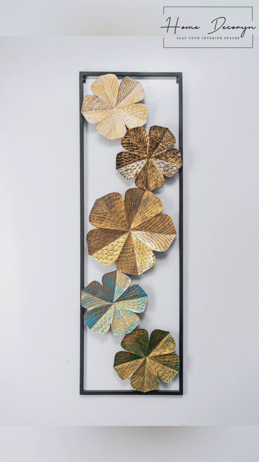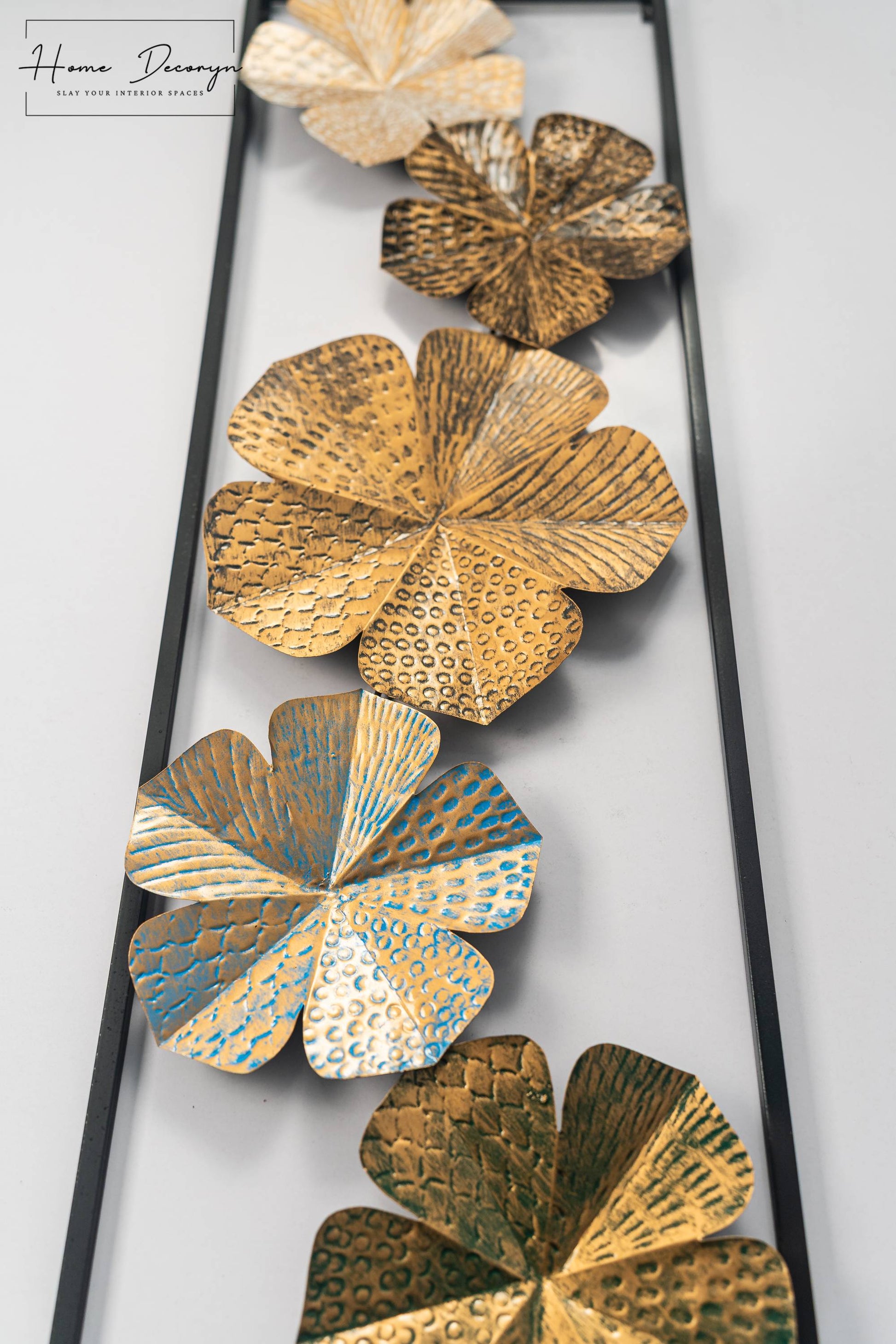 A graceful metallic column of flower-shaped patterns, stacked in perfect harmony to create a vertical bloom of elegance. This artistic piece adds a touch of nature’s beauty and sculptural charm to any interior setting.