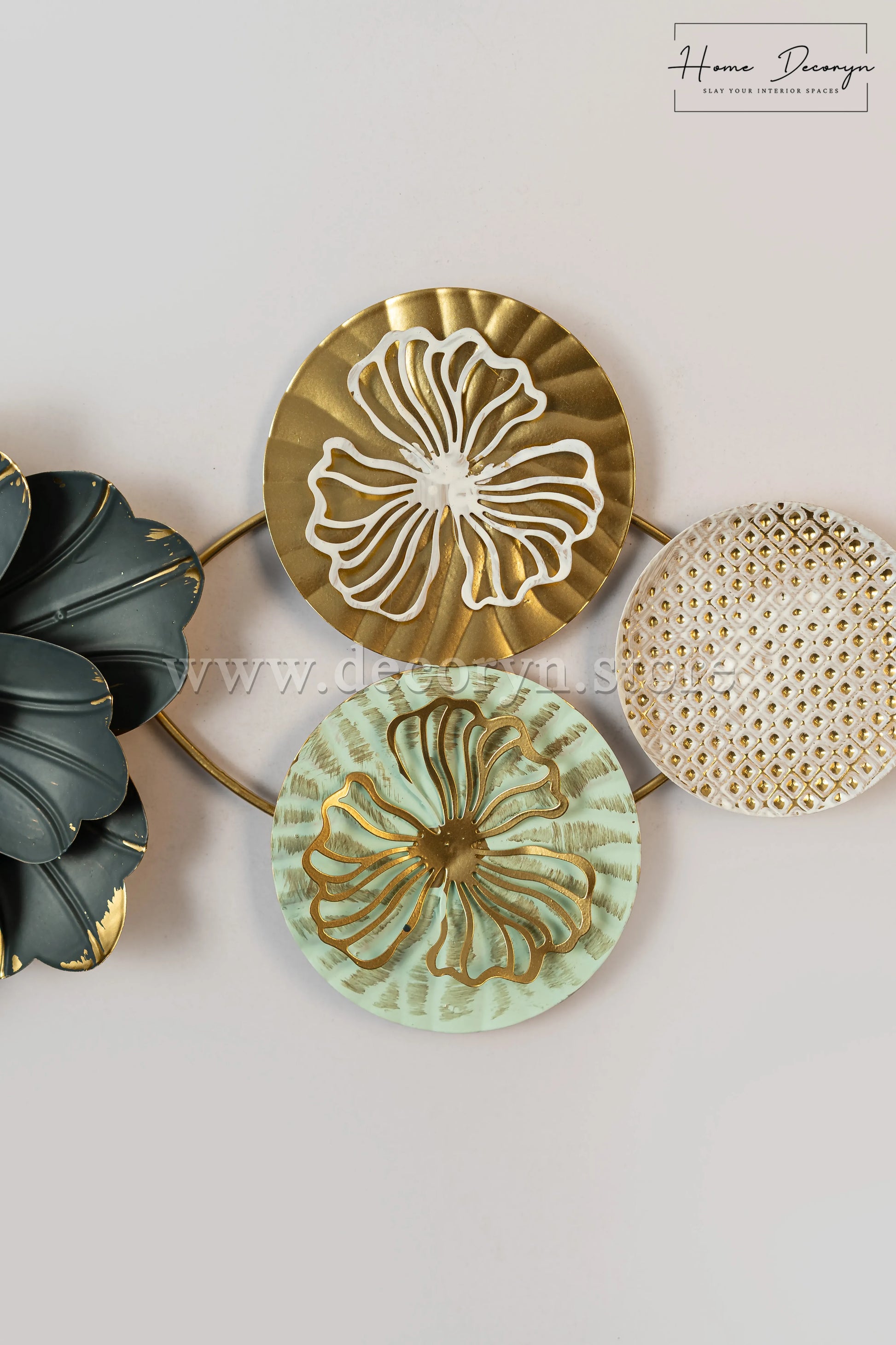 Bring timeless elegance to your space with the Eternal Bloom metal wall hanging. Crafted with intricate detail, this stunning piece features a radiant flower at its heart — symbolizing growth and harmony — gracefully framed by two interwoven circles that represent balance and infinity. Perfect for living rooms, hallways, or entryways, this artful blend of floral beauty and geometric design adds a touch of sophistication and modern charm to any wall.