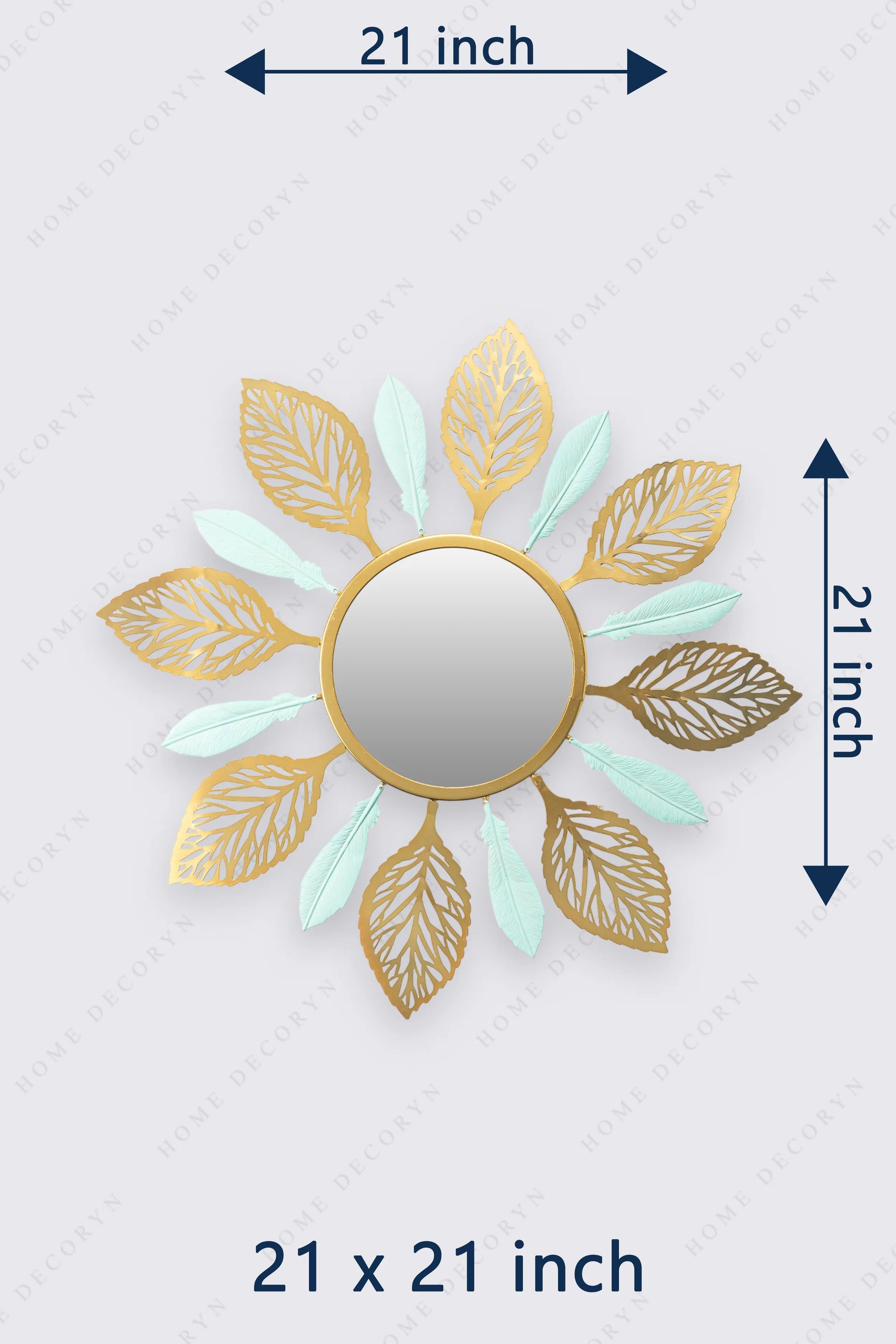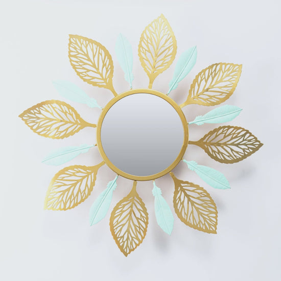 A statement piece that blends elegance and artistry, this round mirror features delicately crafted metallic leaves at each corner, adding a touch of nature-inspired luxury. Perfect for enhancing your living room, hallway, or bedroom, it reflects both light and style, making any space feel more open and inviting.