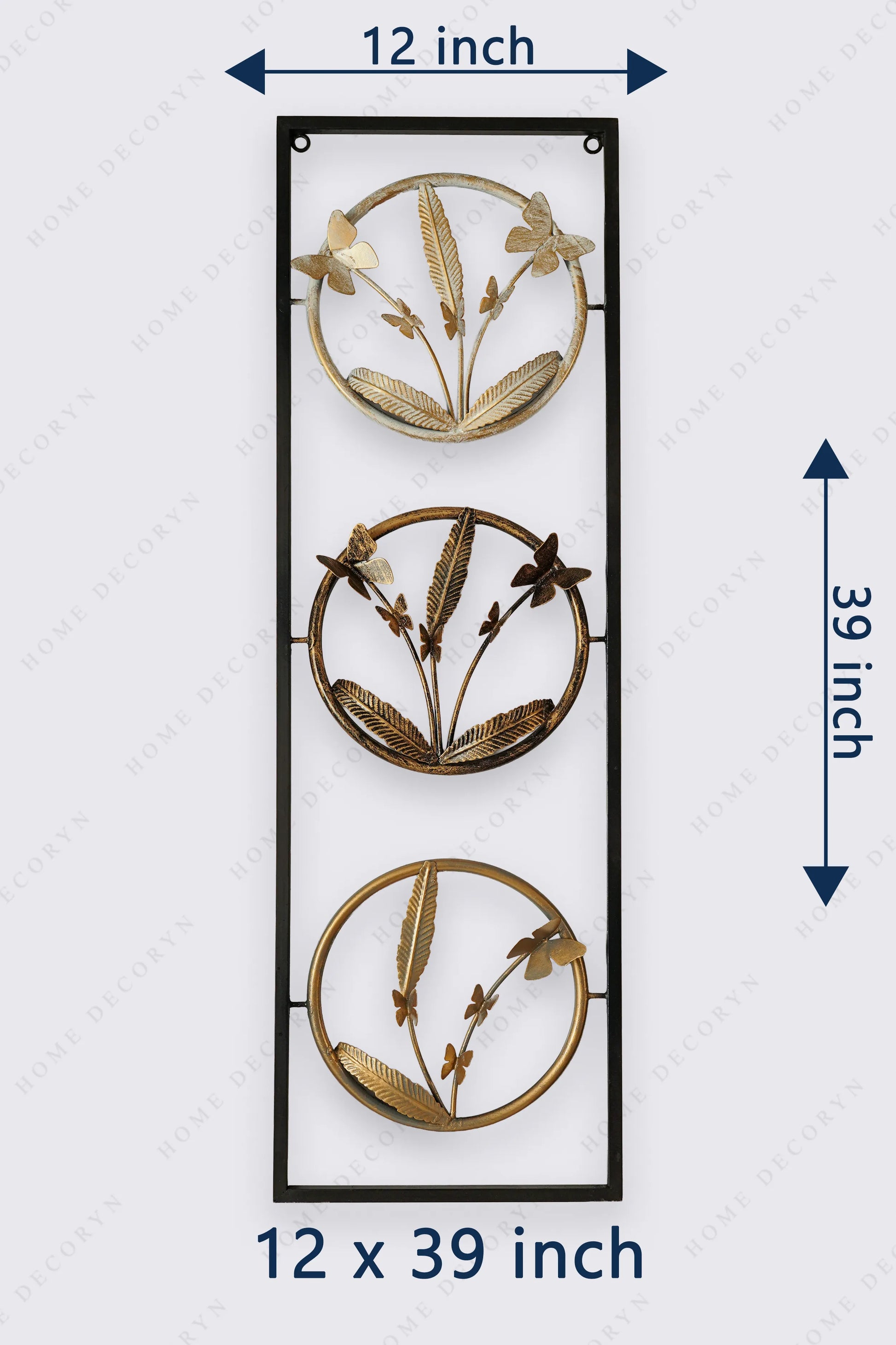 Add refined elegance to your walls with the Golden Orbit Floral Wall Frame — a sleek rectangular wall hanging designed to captivate. Featuring three large circular panels arranged in a clean horizontal line, each circle showcases delicate floral motifs and graceful butterflies, creating a perfect balance of structure and artistry.